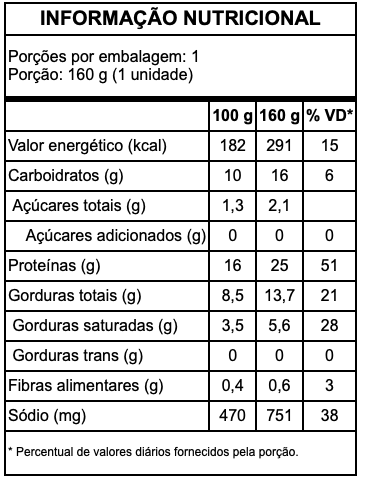 Nossa crepioca de carne de panela é feita com uma massa bem levinha, à base de ovos e tapioca, sem glúten e rica em proteínas. O recheio é preparado com carne de panela desfiada, cozida lentamente com molho de tomate, temperos naturais e especiarias que garantem muito sabor. Para finalizar, adicionamos queijo mussarela zero lactose, trazendo muita cremosidade.